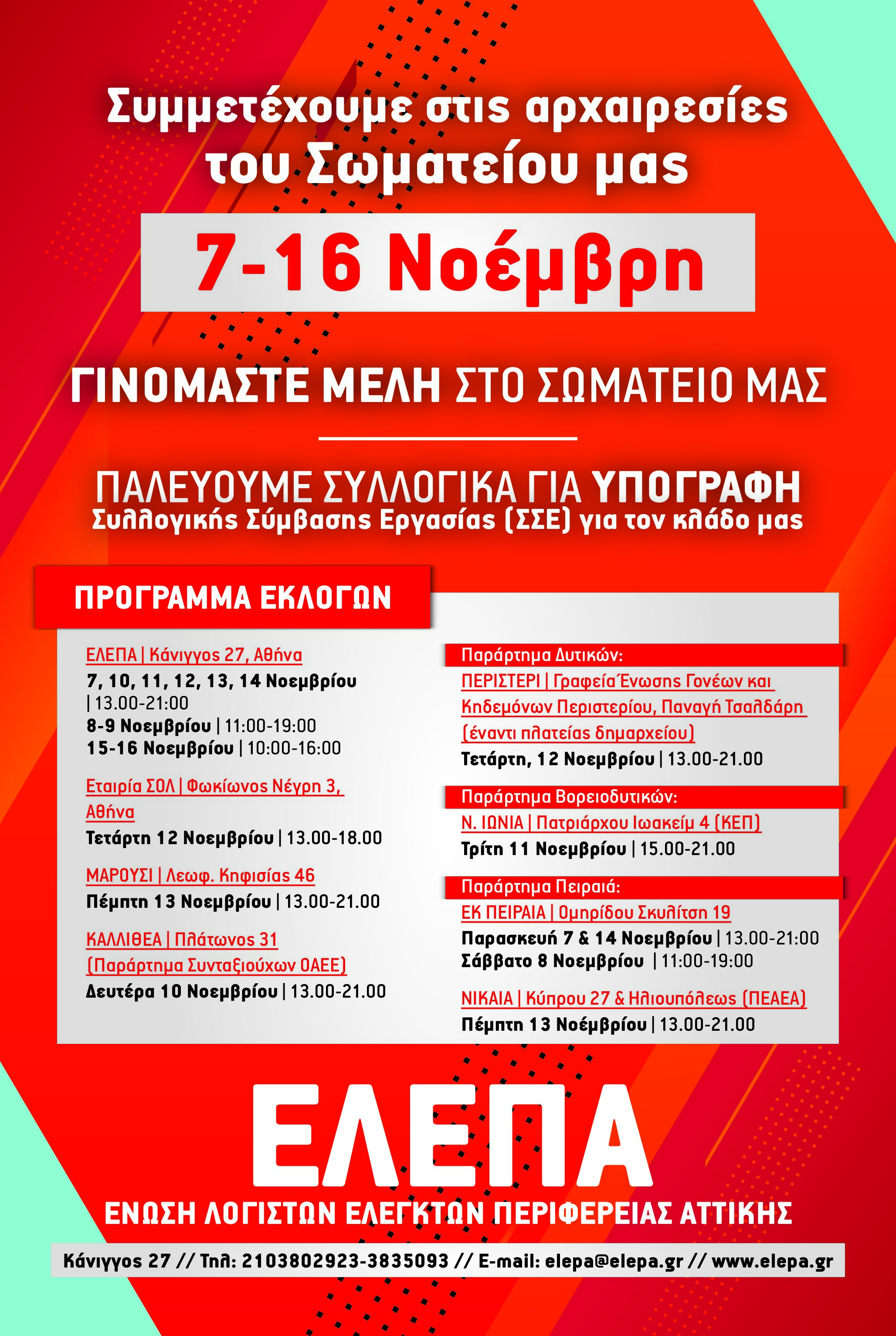 ΞΕΚΙΝΑΝΕ ΟΙ ΕΚΛΟΓΕΣ ΜΑΣ!-Συμμετέχουμε – Ψηφίζουμε από 7 έως 16 Νοέμβρη. ΓΙΑ ΑΚΟΜΑ ΠΙΟ ΜΑΖΙΚΟ- ΔΥΝΑΤΟ ΣΩΜΑΤΕΙΟ,ΓΙΑ ΝΑ ΑΚΟΥΓΕΤΑΙ ΠΙΟ ΔΥΝΑΤΑ ΚΑΙ Η ΔΙΚΗ ΣΟΥ ΦΩΝΗ.